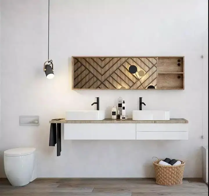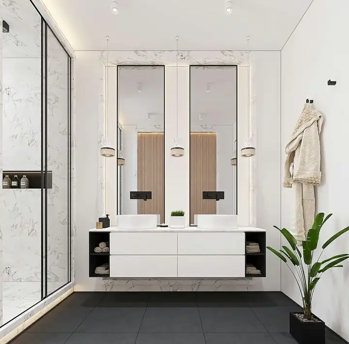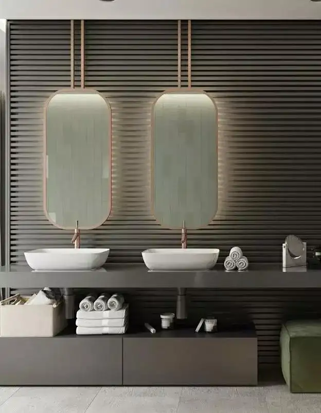 雙人洗漱臺的好處不僅在于節(jié)省時間,有效提高洗漱效率,就連女人專屬的化妝間都可以因此省去,讓你和伴侶之間親密地享受快樂的盥洗時光。