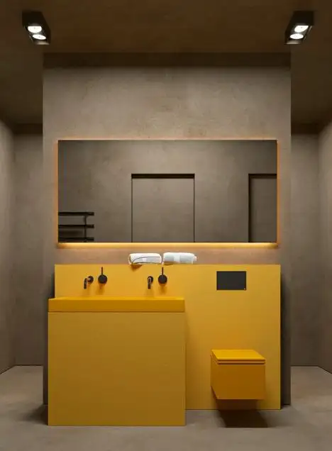 ▲黃色是暖色調(diào),有放松心情、緩解緊張情緒的作用。用充滿活力與熱情的黃色來裝飾洗漱臺,更能讓人保持愉悅的心情,而早上的洗漱時光也仿佛會在這股氛圍的渲染下,變得從容不迫起來。