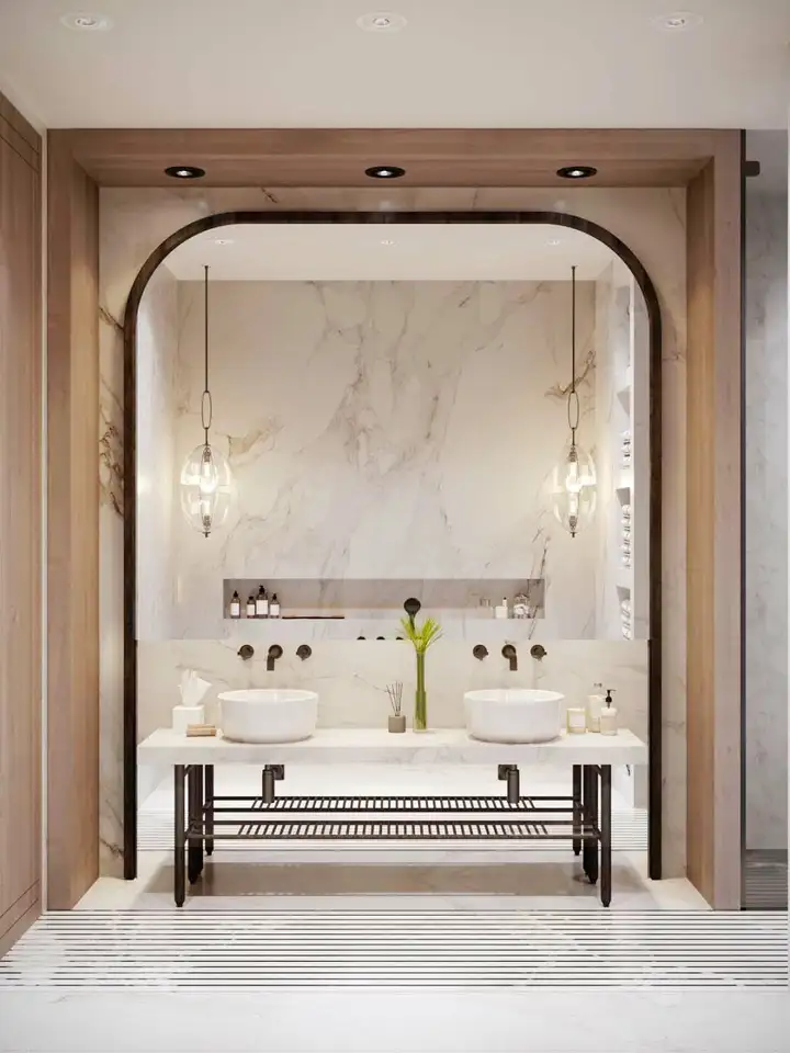 ▲新穎而創(chuàng)意的大理石墻面設(shè)計,將藝術(shù)融入生活,讓衛(wèi)生間的氛圍瞬間擺脫單調(diào)與沉悶,給人帶來高端大氣的視覺享受。
