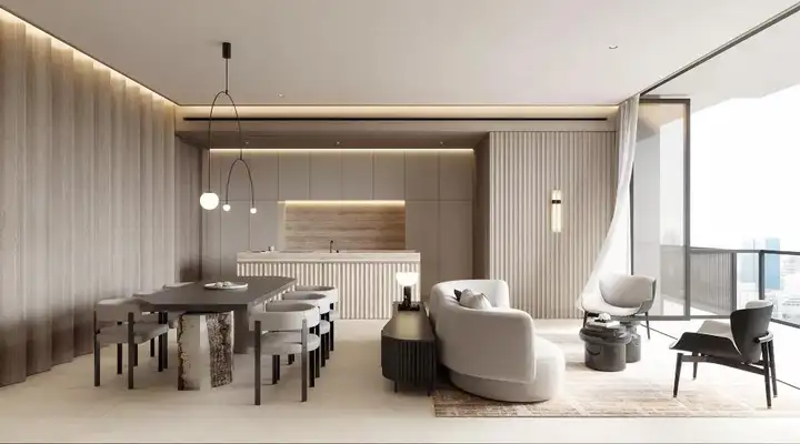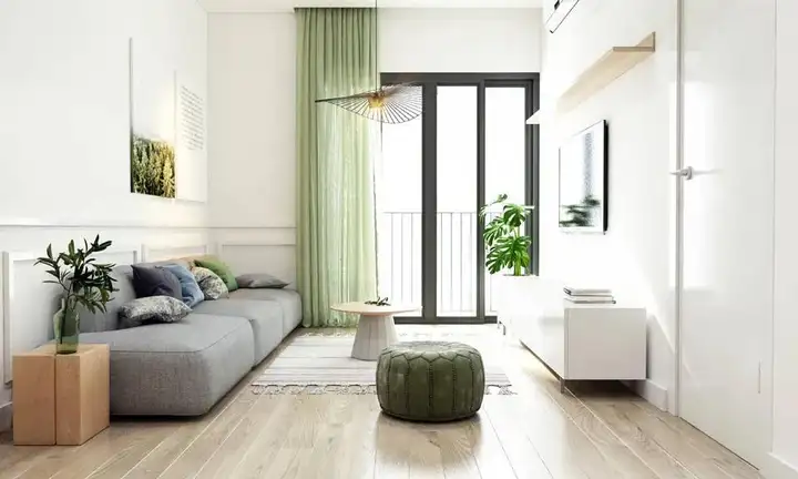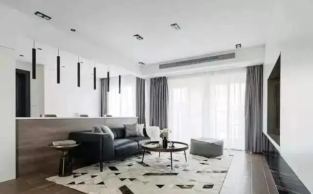 沙發(fā)尺寸不宜太大,雙人位沙發(fā)最好不要帶轉(zhuǎn)角。低靠背的沙發(fā)更能在視覺上增加留白,起到拔高層高的效果。