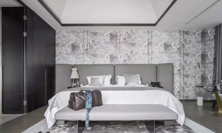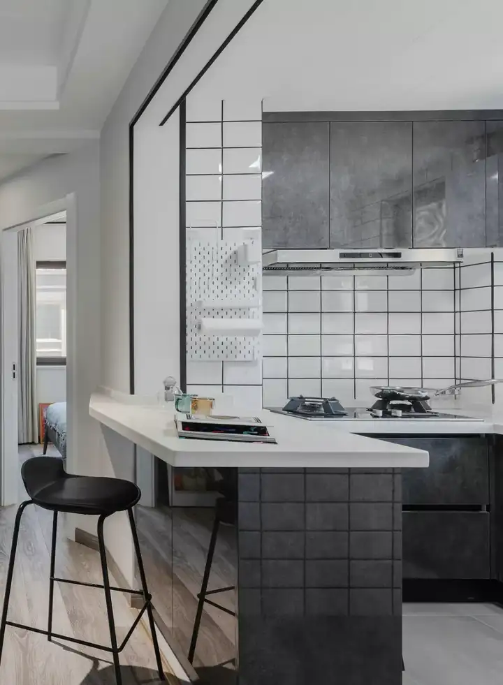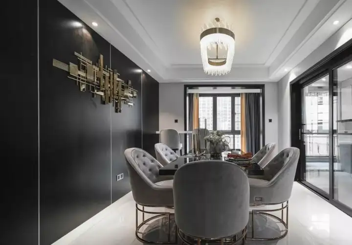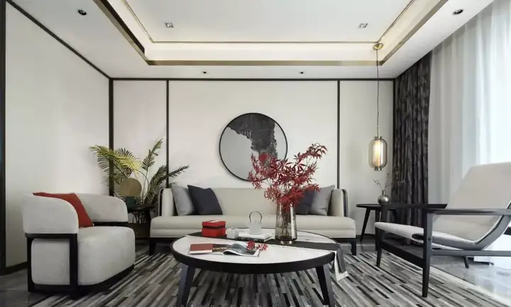 新中式風(fēng)格中常常運用到黑色窄框線,墻面的大片留白加上黑色線條的點綴,黑與白,線與面,仿佛一幅水墨畫般充滿中式古典氣息。