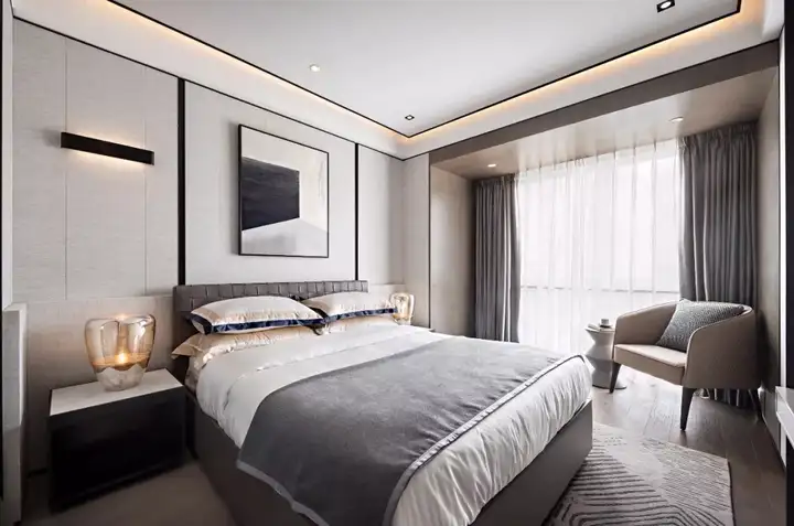 而窄框線,則充分體現(xiàn)了現(xiàn)代簡約風(fēng)“少即是多”的原則。簡潔明了的線條裝飾,串聯(lián)起單薄的面,加深整個房間的空間感和縱深感,給人一種豁然開朗的感覺。