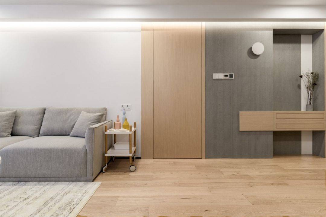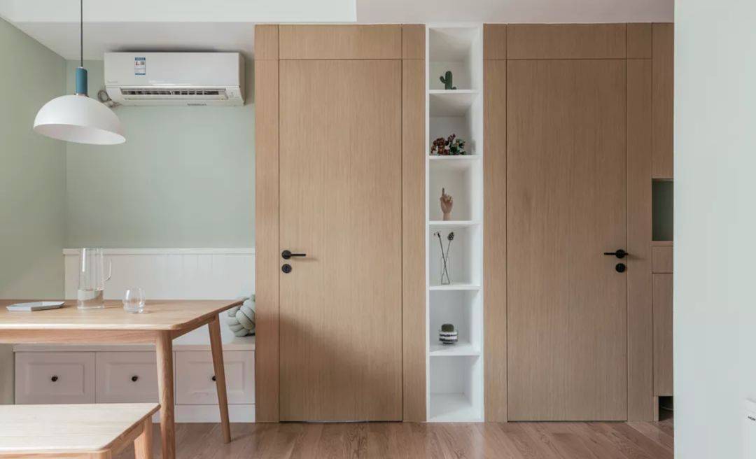 隱形門(mén)最常出現(xiàn)在帶有衣帽柜、儲(chǔ)物柜等具備儲(chǔ)藏功能的空間中。通過(guò)將門(mén)與這些家具的顏色相融合,不僅在視覺(jué)上達(dá)到了和諧的統(tǒng)一,還巧妙地增強(qiáng)了整體空間的協(xié)調(diào)感。