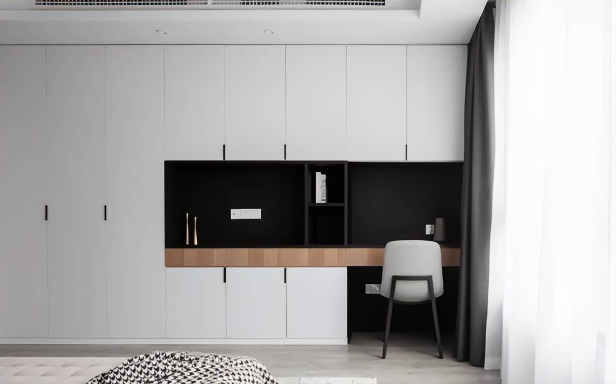 為了提高空間利用率,如今許多臥室都傾向于選擇衣柜與書桌、梳妝臺等組合式設(shè)計。這種設(shè)計方式不僅實用,而且非常符合小戶型的需求,使空間得到最大化的利用。