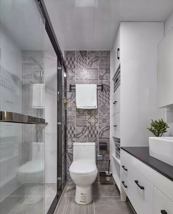 另一種創(chuàng)新的方式是在衛(wèi)生間的地面上鋪貼花磚,這種設(shè)計(jì)能夠創(chuàng)造出一種獨(dú)特的視覺(jué)效果,讓人在低頭時(shí)感受到復(fù)古的魅力,抬頭時(shí)則能感受到時(shí)尚的氣息。這種鋪設(shè)方式不僅能夠提升整個(gè)空間的格調(diào),還能夠?yàn)樾l(wèi)生間增添一份獨(dú)特的藝術(shù)氣息?;ùu的選擇和鋪設(shè)方式可以根據(jù)個(gè)人喜好和整體風(fēng)格來(lái)決定,從而打造出一個(gè)既舒適又充滿個(gè)性的衛(wèi)生間空間。